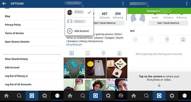 Step 5: To add Three more Instagram accounts repeat the first two steps. And if now you want to log out any of the accounts you can do that by simple picking the account from the “Username Menu” and then use the settings menu from that account. In the settings menu just find the option of log out and tap it.You will now be logged out of the selected account.